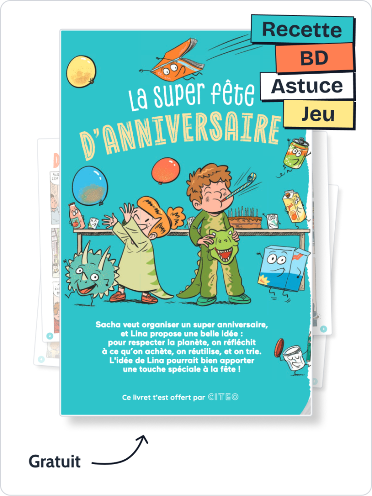 Une BD avec Sacha et Lina pour découvrir la Réduction, le Réemploi et le Recyclage… en organisant une super fête d’anniversaire !